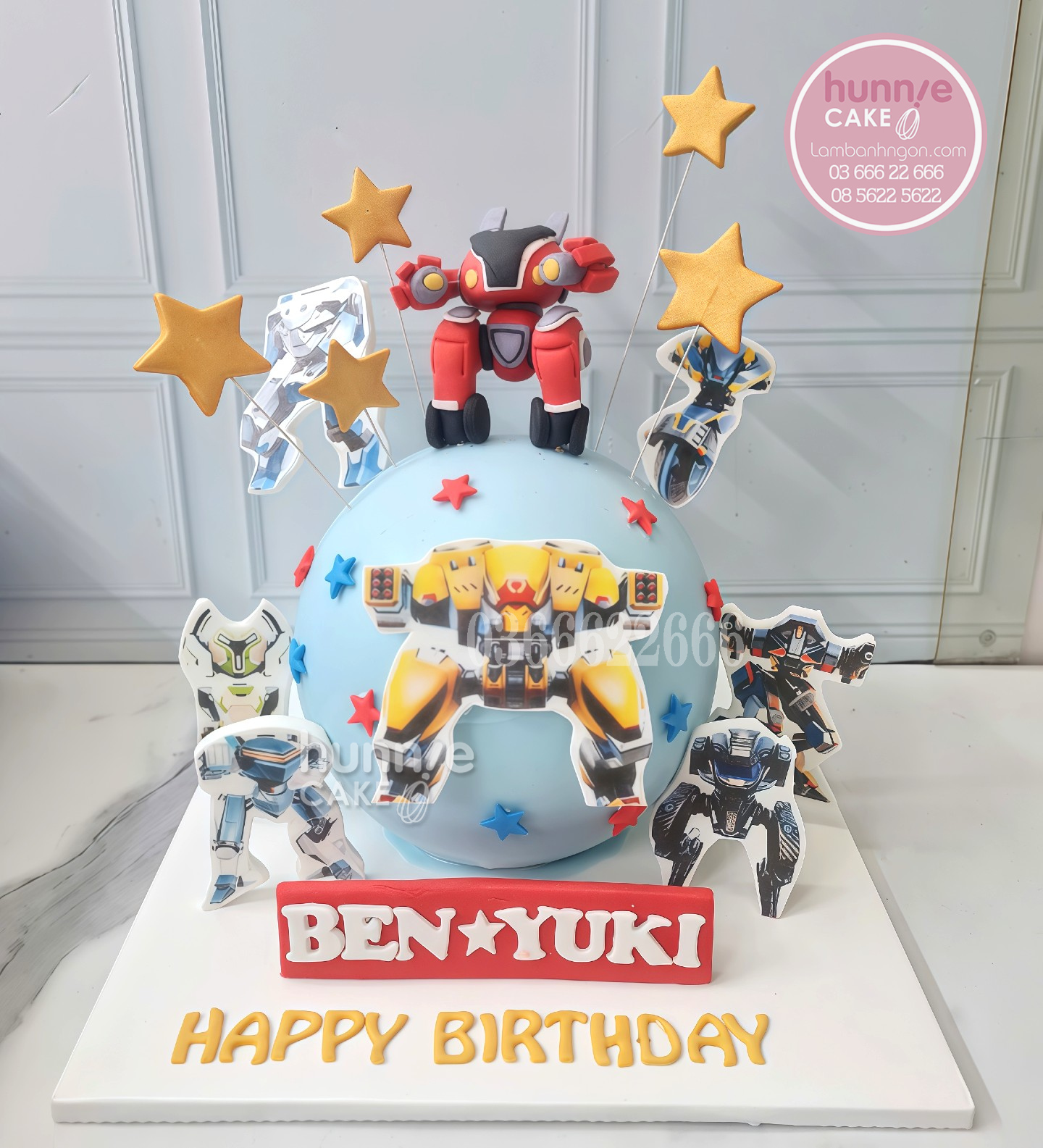 Từ khóa theo hình dáng và chi tiết: Bánh sinh nhật hình quả cầu, bánh robot màu xanh, bánh kem trang trí ngôi sao vàng, bánh pinata chứa kẹo, bánh kem tên Ben Yuki.