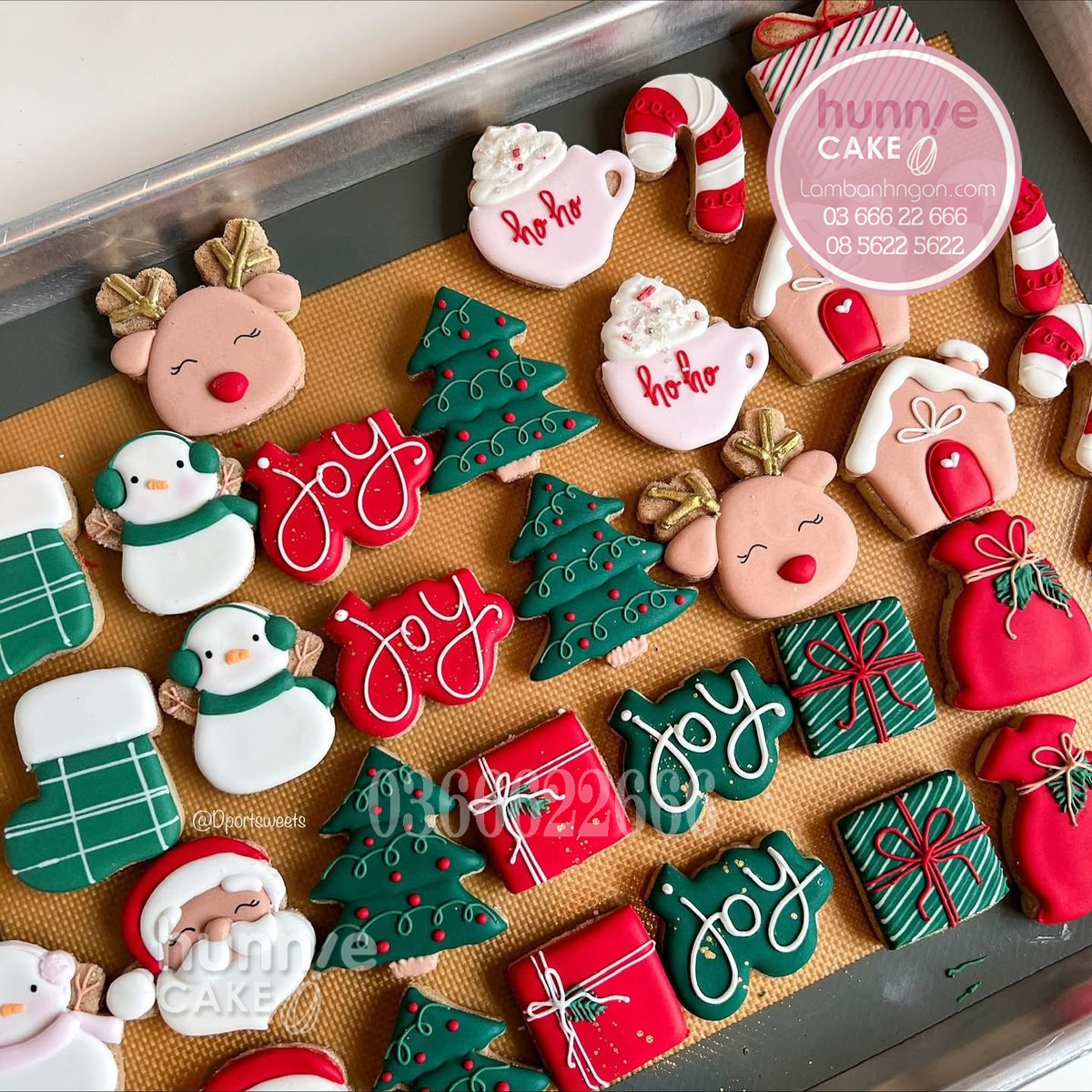 cookies ông già Noel, cookies tuần lộc, cookies cây thông, cookies kẹo que, cookies bánh gừng, bánh Noel trang trí đẹp