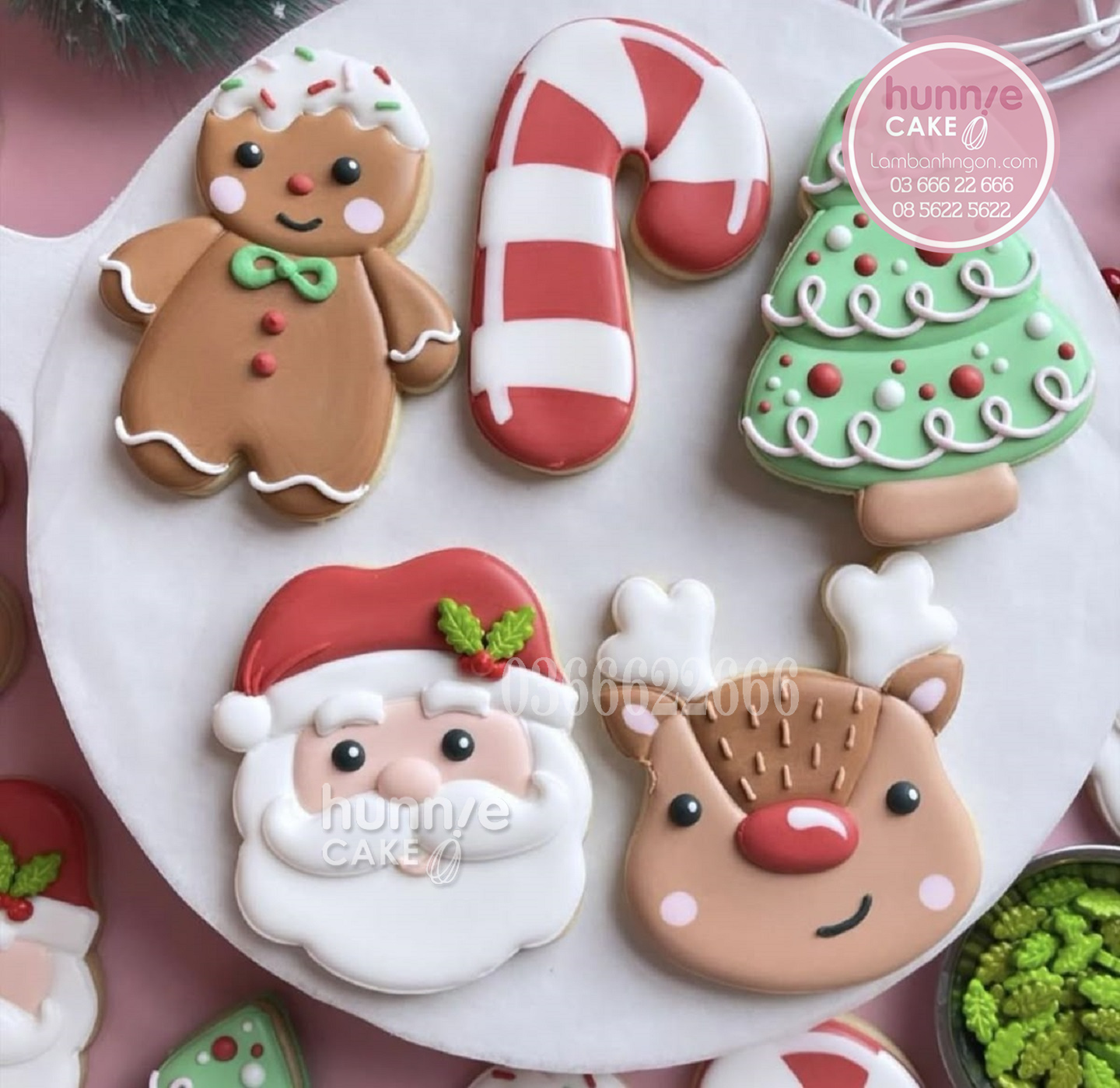 cookies ông già Noel, cookies tuần lộc, cookies cây thông, cookies kẹo que, cookies bánh gừng, bánh Noel trang trí đẹp
