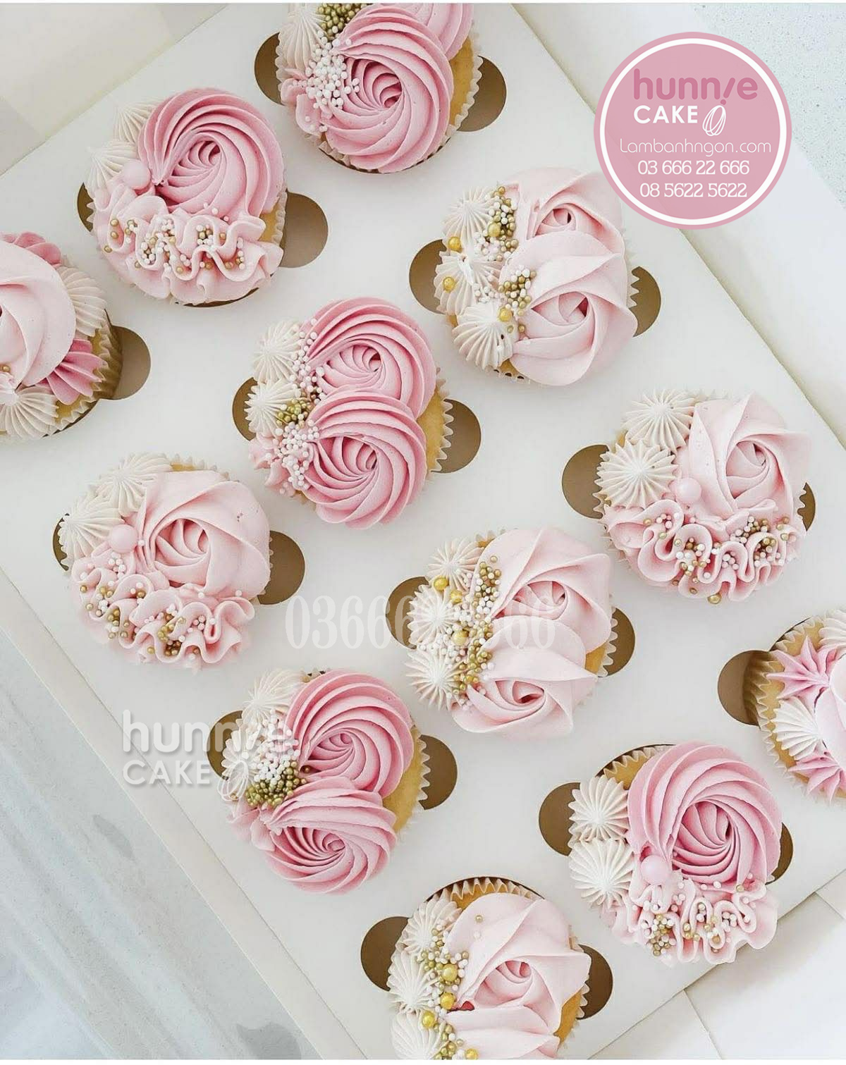 Bánh Cupcake tông màu hồng pastel đẹp Hunnie Cake