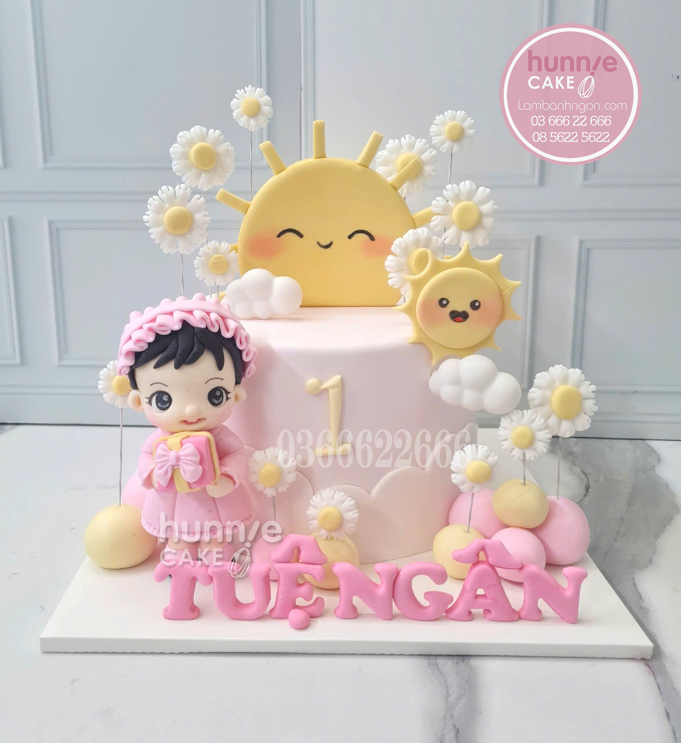 Bánh sinh nhật bé gái 1 tuổi Hunnie Cake - Mặt trời bé con cho ngày thôi nôi rực rỡ