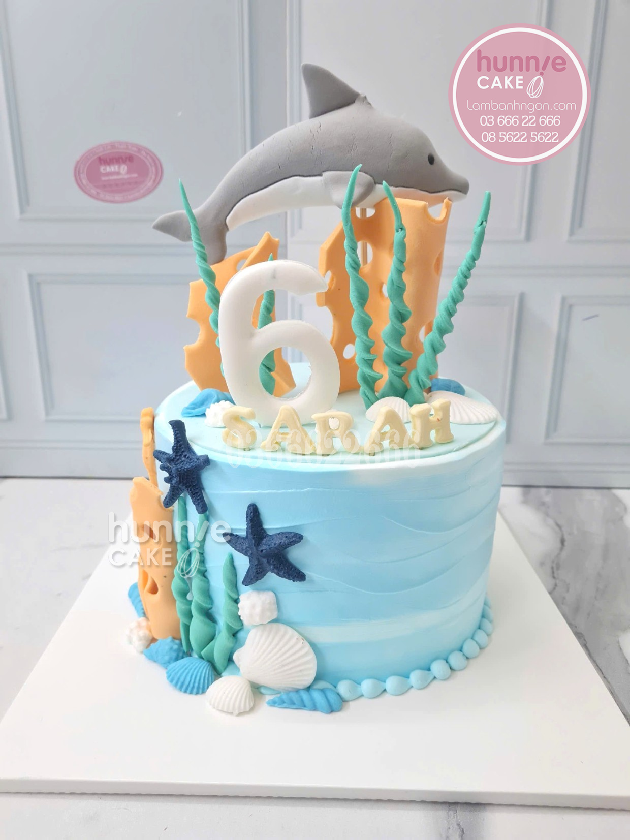 Bánh sinh nhật cá heo ý nghĩa tặng bé 6 tuổi Hunnie Cake - Khám phá đại dương xanh