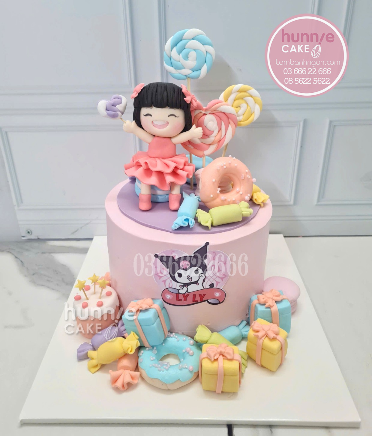 Hashtag: #HunnieCake #Lambanhngon #BanhSinhNhatBeGai #BanhKuromi #BanhKeoNgot #BanhSinhNhatLyLy #BanhFondant #BanhSinhNhatHaNoi #BanhKemThietKe #KuromiCake