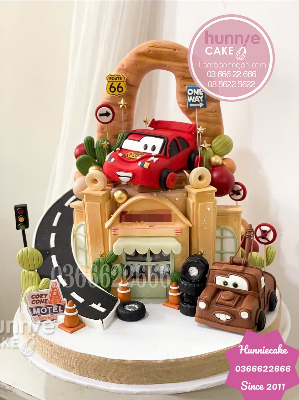 Bánh sinh nhật ô tô McQueen đường đua kỳ thú Hunnie Cake