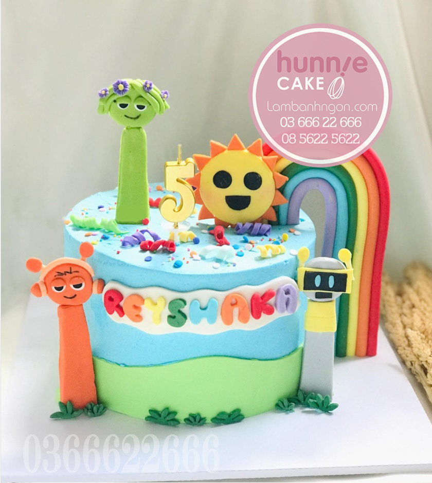 Thiết kế bánh fondant nhân vật Sprunki và cầu vồng tại Hunnie Cake