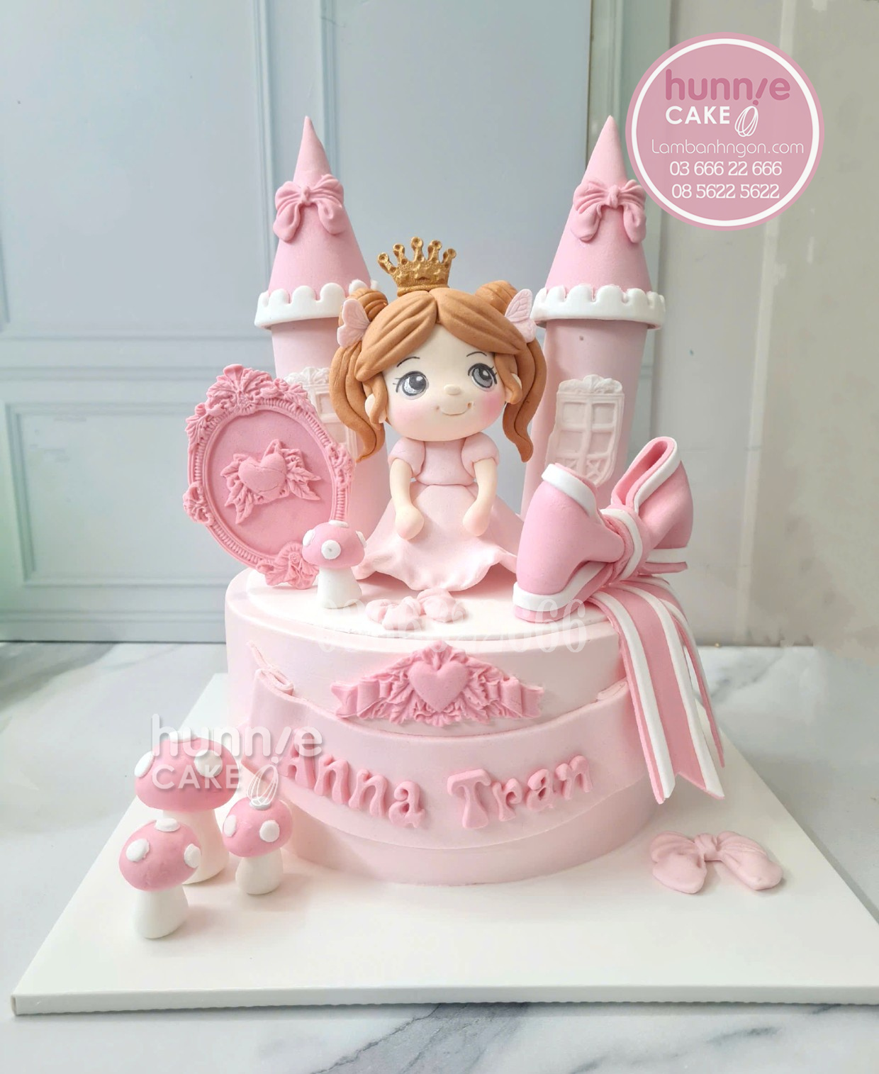 Bánh sinh nhật bé gái và lâu đài cổ tích màu hồng từ Hunnie Cake đẹp nhất