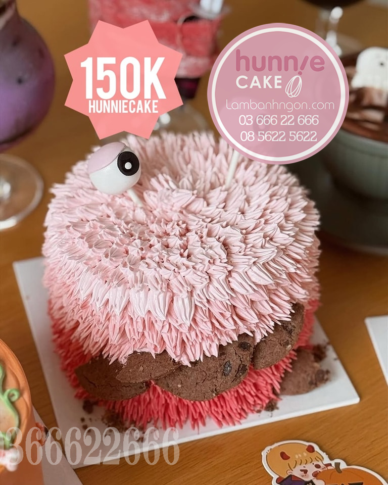 bánh sinh nhật quái bông mắt lồi Halloween Hà Nội, bánh Halloween quái bông đáng yêu cho bé, bánh sinh nhật chủ đề Halloween Hunnie Cake, bánh kem Halloween độc đáo tại Hà Nội