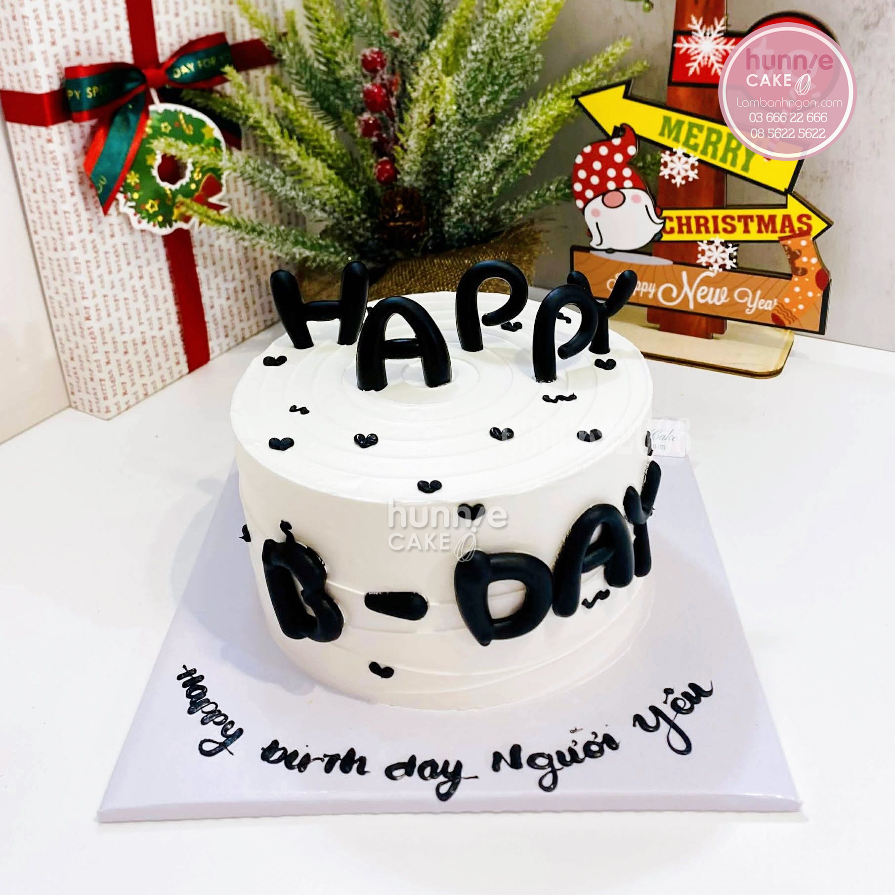 Hashtag: #BánhSinhNhậtHappyBDay #BánhKemTốiGiản #BánhKemTrắngĐen #BánhChữNổi #BánhSinhNhậtHiệnĐại #HunnieCake #BánhKemĐẹp