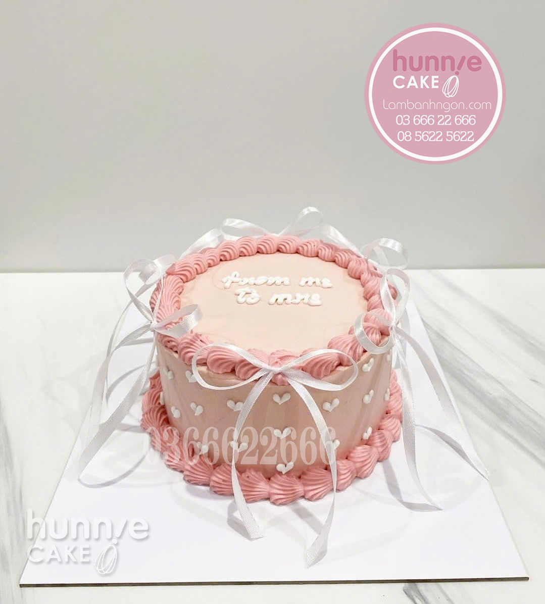 Bánh sinh nhật màu hồng thắt nơ trắng – Món quà ngọt ngào cho công chúaGiá: 250.000 VNĐ