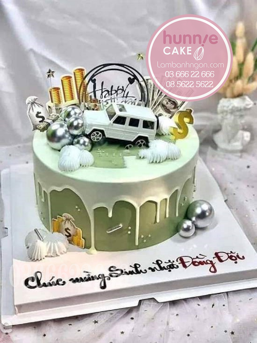 bánh sinh nhật xe ô tô, bánh sinh nhật xe hơi, bánh sinh nhật mô hình xe, bánh sinh nhật tiền vàng, bánh sinh nhật chủ đề thành công