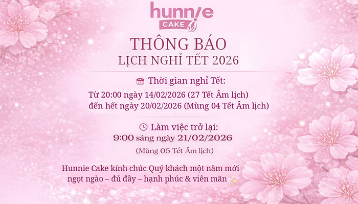 Nhân dịp Tết Nguyên Đán 2026, Hunnie Cake trân trọng thông báo đến Quý khách lịch nghỉ Tết như sau: