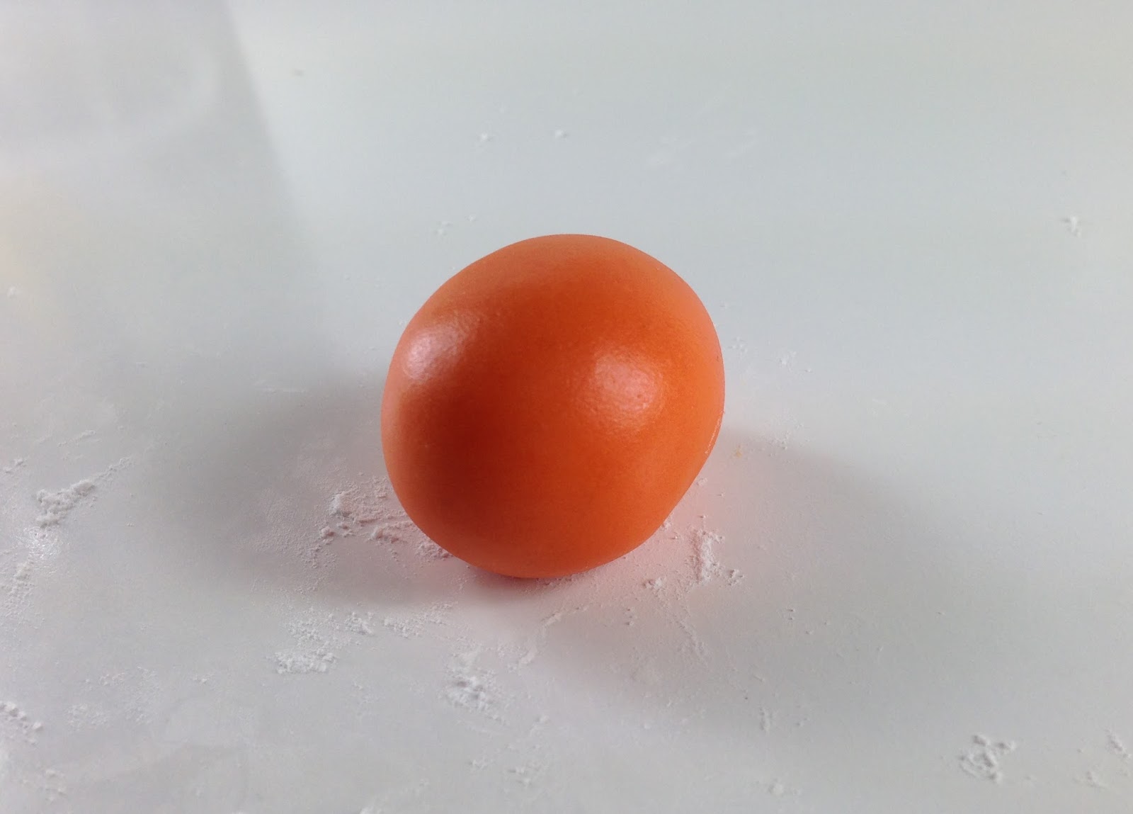 (5) Now, flip Mr Starfish over again. As you can see, he looks kind of flat. So go ahead and get some more orange fondant, fashion it into a ball.