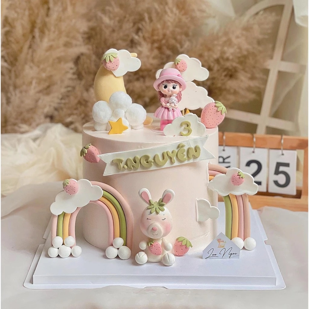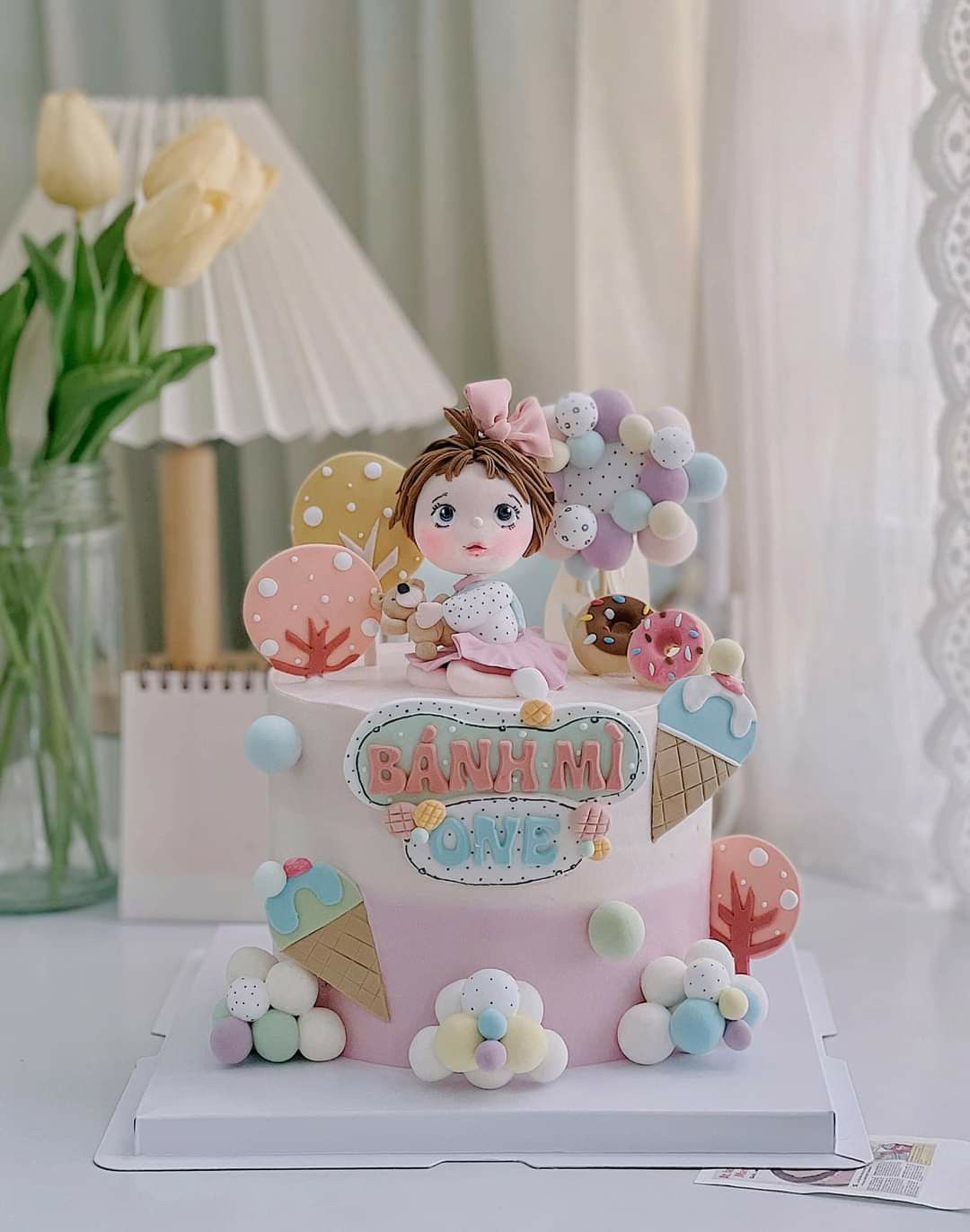 Các mẫu như bánh Mini, Khả Nhi, T.Nguyên hay Bánh Mì One được yêu thích nhờ tạo hình bé gái xinh xắn, váy áo pastel, kèm cầu vồng, mây trắng và hoa cỏ tinh tế.